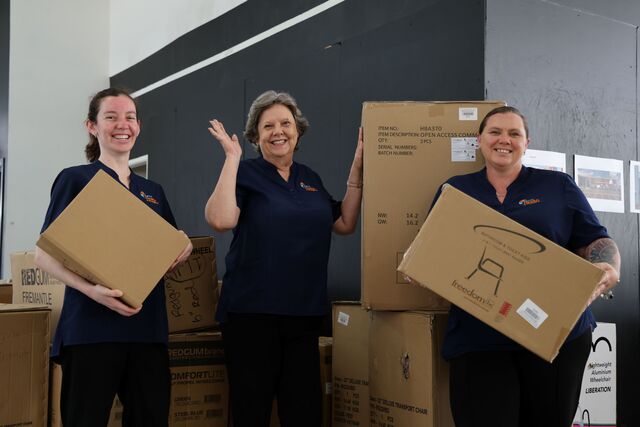 The Regional Health and Mobility South Rockhampton staff moving stock to their new premises at 155 Alma Street, Annalyce Lawrence, Kay Bonerath and Peta Anderson. (Supplied)