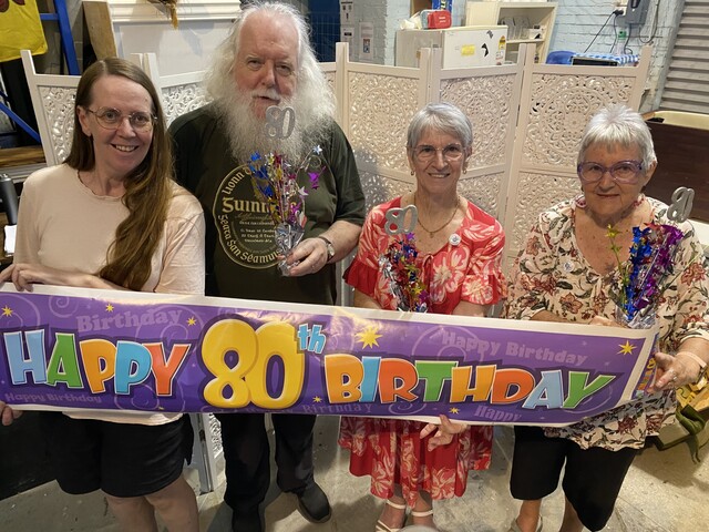 Committee members celebrate the 80th anniversary of Rockhampton Little Theatre. (Supplied)