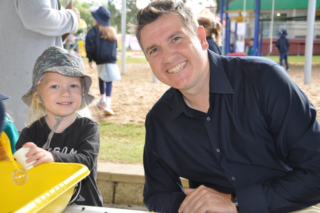A young Mr Rose with Keppel MP Nigel Hutton. Mr Hutton said the State Government has made significant strides in the education sector during their first 12 months in charge. (Supplied)