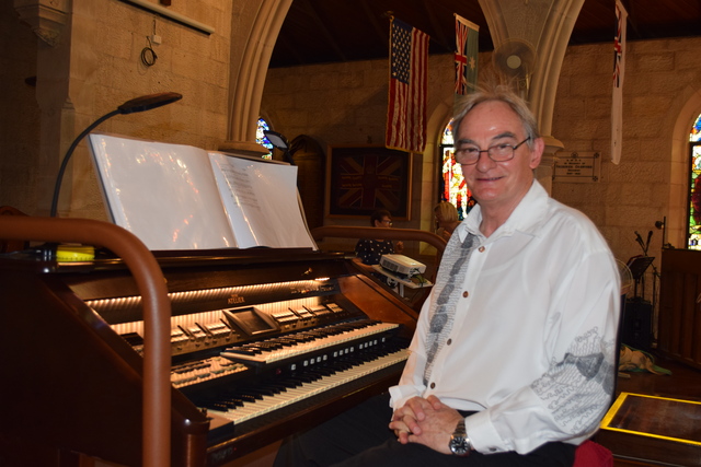 Rockhampton Youth Orchestra Inc chair Ivan Richardson at the keys of 'Artie' the Roland Grand Orchestral Concert Organ. (Jenny Lightfoot)