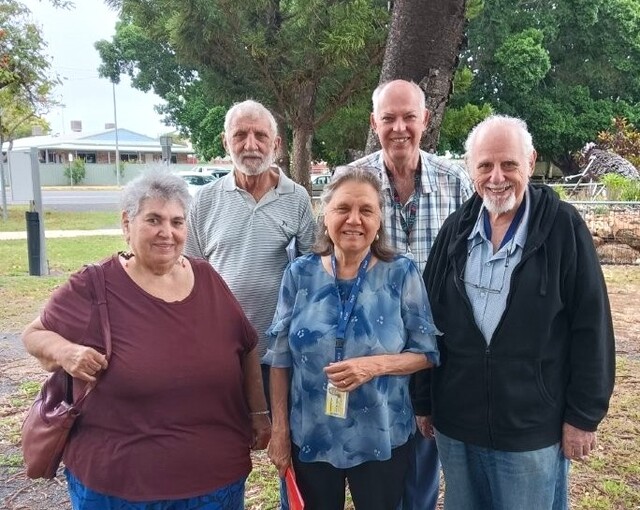 Leading the project to honour 12 WWI nurses on historic pines in Morton Park are Aunty Rose Sjaardema, Noel Mallyon, Margaret Rawsthorne, Craig Dinsmore and Victor Cominos. (Supplied)
