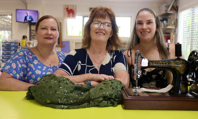 Melissa Hintz, Suzan Stewart and Jessica Holder are saying goodbye to I Sew. Pictured to the right is the machine that Suzan learnt to sew on. (Matthew Pearce: 520854)
