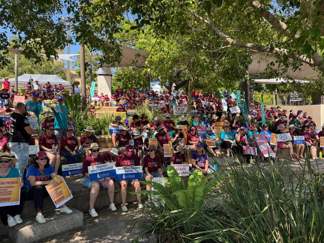News Teachers strike for better pay 28/11/2025 Facebook About 600 teachers were gathered at Rockhampton's Riverside Precinct on Tuesday, 25 November (Supplied). By Sophie Mossman More than 600 teachers were gathered at Rockhampton’s Riverside Precinct, braving sweltering temperatures to air their grievances and put their […] Subscribe or Login to see the rest of the content. Username Password * Remember Me Forgot Password