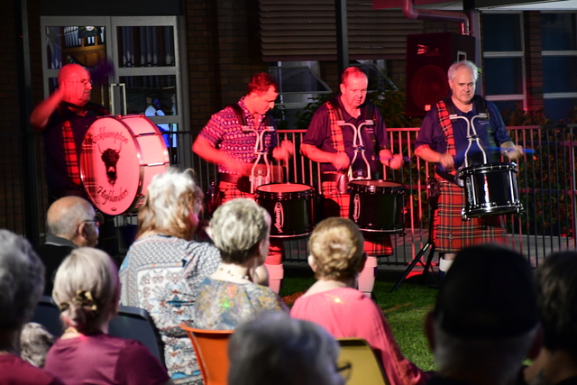 The Rockhampton Highlanders Pipe Band, Highland Drummers and Highland Dancers add to the wonderful community atmosphere of the annual Carols on the Lawn Christmas event at South Rockhampton Uniting Church. (Lindsay Soanes)