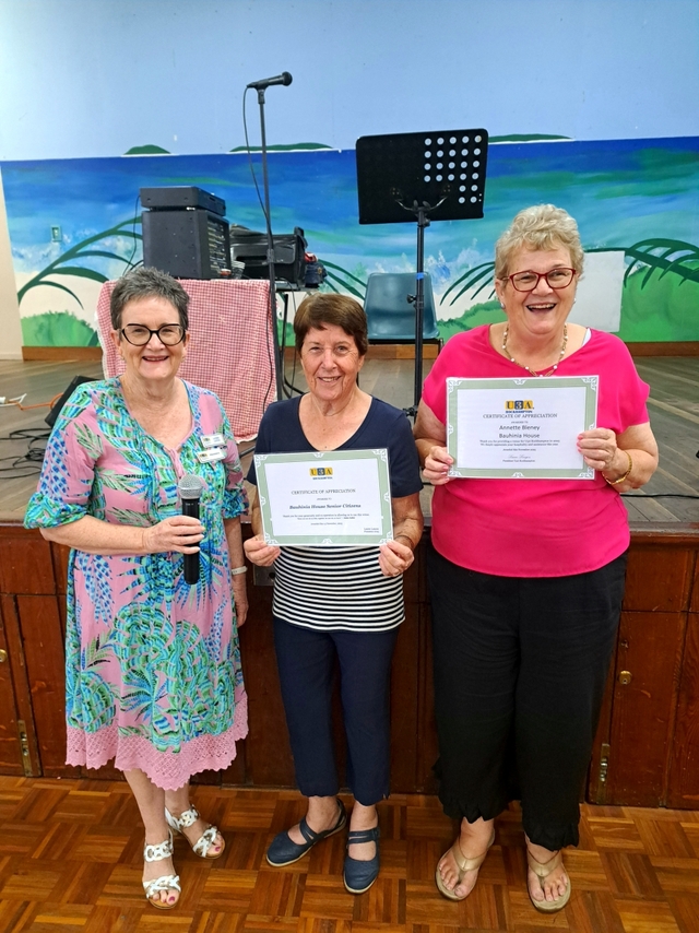 U3A Rockhampton and District president Lauree Lanyon says thanks to North Rockhampton Senior Citizens Club president Joyce Messer and secretary Annette Bleney. (Supplied)