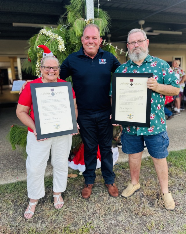 Gracemere RSL Sub Branch members Ruth and Tony Harris were recently presented with the Keith Payne VC Award by Jon Felton. (Supplied)