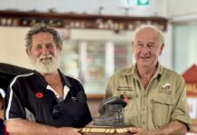 Peter Lloyd, ex-Navy veteran and Dave Britten, ex-49th Battalion the Royal Queensland Regiment, were both presented with the Outstanding Service Award by RSL Gracemere...