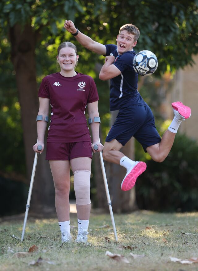 Siblings Hayley and Connor Campbell have had knee injuries, with a new report highlighting the rise in sporting injuries in athletes under the age of 18. (Supplied)