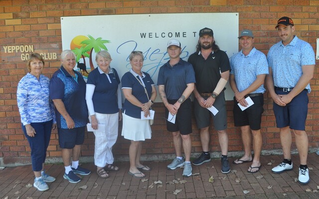Lyn Goan, Shelly Horwell, Anne Bishop, Debbie Jenkins, James Bagnall, Beau Elphinstone, Martin Ohl and Daniel Scharf took the major honours from the 2025 Central Queensland Four Ball Stableford Championship. (Supplied)
